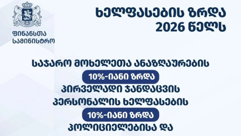 2026 წელს გათვალისწინებულია საჯარო მოხელეთა ანაზღაურების 10%-იანი ზრდა.