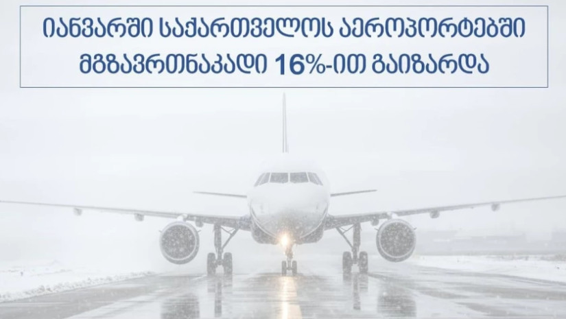 საქართველოს ეკონომიკისა და მდგრადი განვითარების სამინისტროს ინფორმაციით, 2026 წლის იანვარში საქართველოს აეროპორტებში მგზავრთნაკადი 16%-ით გაიზარდა. ამავე პერიოდში ქვეყნის აეროპორტებში შესრულებულმა ავიარეისების ჯამურმა მაჩვენებელმა 2873 შეადგინა, რაც გასული წლის იანვრის მონაცემს 16.17%-ით აღემატება.
