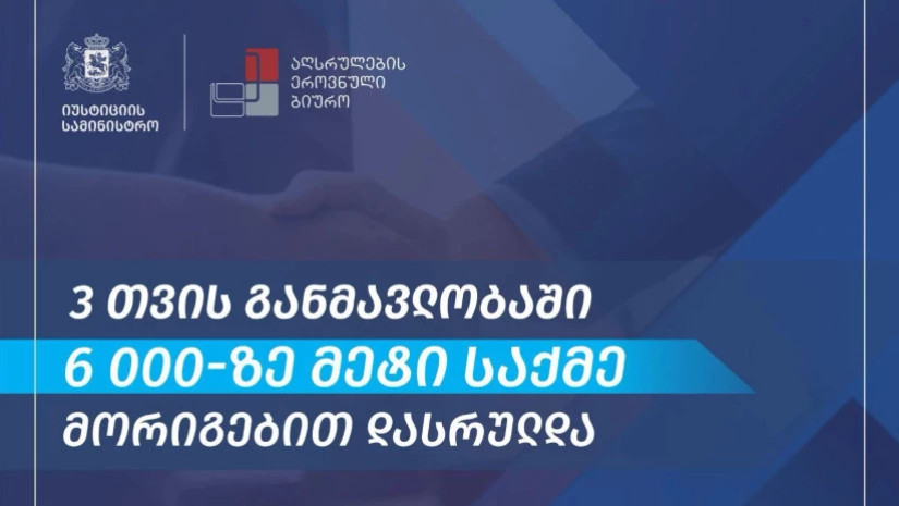 2026 წლის იანვრიდან მარტის ჩათვლით: აღსრულების ეროვნულ ბიუროში მხარეებს შორის მორიგებით და განწილვადებით 6 000-ზე მეტი საქმე დასრულდა. ინფორმაციას აღსრულების ეროვნული ბიურო ავრცელებს.