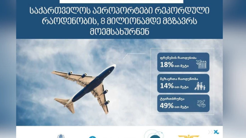 „იანვარ-ნოემბერში საქართველოს აეროპორტები 8 მლნ-მდე (7 863 534) მგზავრს მოემსახურნენ, რაც 2024 წლის ანალოგიურ პერიოდში არსებული მგზავრთნაკადის (6 908 493) რაოდენობას 14%-ით აღემატება. საანგარიშო პერიოდში განხორციელებული რეგულარული რეისების რაოდენობამ 26 855 ავიარეისი შეადგინა, ხოლო ჩარტერული ფრენების რაოდენობამ - 8 250. ჯამურად, 11 თვეში შესრულებული ავიარეისების რაოდენობა (35105) 18%-ით აღემატება 2024 წლის ანალოგიურ პერიოდში განხორციელებული ფრენების (29 871) რაოდენობას, რაც ასევე რეკორდული მაჩვენებელია.