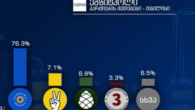 „ქართული ოცნება“ 76.3% - „გირჩი“ 6.8% - „ძლიერი საქართველოსთვის - ლელო“ 7.1% - GORBI-ის ეგზიტპოლის შედეგები