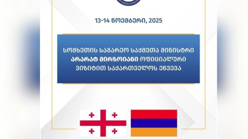 13 ნოემბერს, სომხეთის რესპუბლიკის საგარეო საქმეთა მინისტრი, არარატ მირზოიანი ოფიციალური ვიზიტით საქართველოს ეწვევა. ინფორმაციას საქართველოს საგარეო საქმეთა სამინისტრო ავრცელებს.