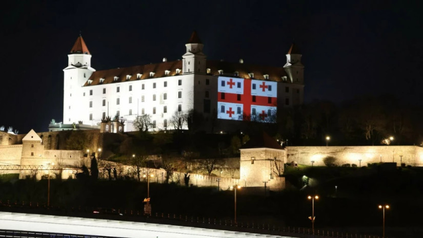 საქართველოს პრეზიდენტის ოფიციალურ ვიზიტთან დაკავშირებით, საქართველოს დელეგაციის პატივსაცემად, ბრატისლავას ციხესიმაგრე საქართველოს დროშის ფერებში განათდა