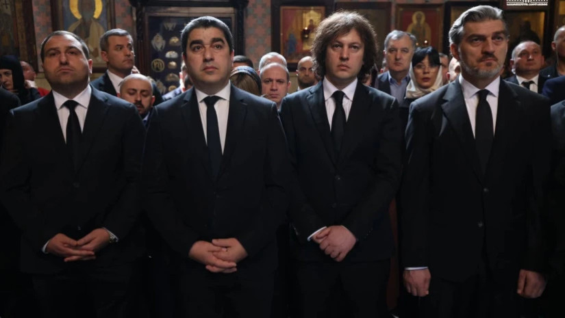 ახალი ამბებისიონის ტაძარში, სადაც ილია II-ის გარდაცვალებიდან 40 დღის გასვლასთან დაკავშირებით წირვა აღევლინება, პრემიერი, პრეზიდენტი და პარლამენტის თავმჯდომარე ესწრებიან