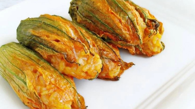 ინგრედიენტები: ყაბაყის ყვავილები, მოცარელა, ანჩოუსი (იტალიურად acciughe), ზეთი.