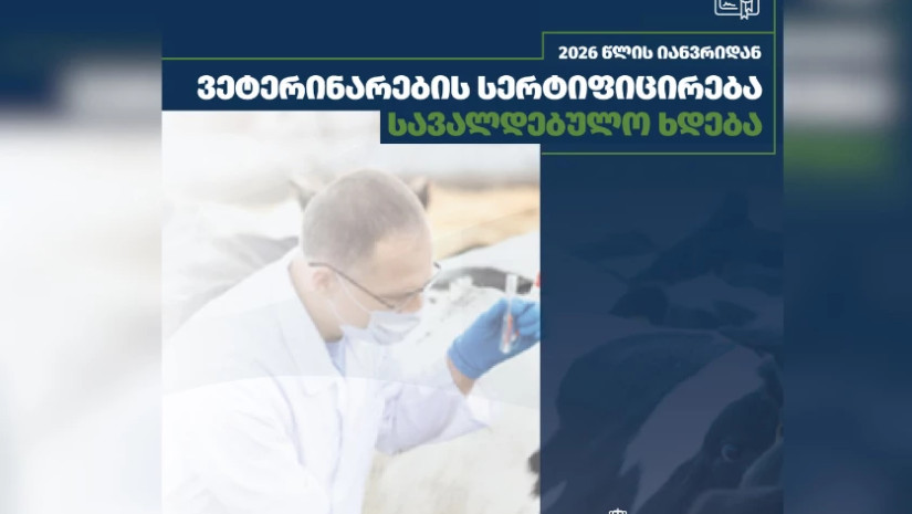 საქართველოს მთავრობის №288 დადგენილების „ვეტერინარისა და ვეტერინარი ტექნიკოსის საქმიანობისთვის სახელმწიფო სასერტიფიკატო გამოცდის ჩატარებისა და მათი პროფესიული განვითარების წესისა და პირობების დამტკიცების შესახებ“ შესაბამისად, 2026 წლის პირველი იანვრიდან, ვეტერინარის საქმიანობა სახელმწიფო სერტიფიკატის გარეშე აიკრძალება.