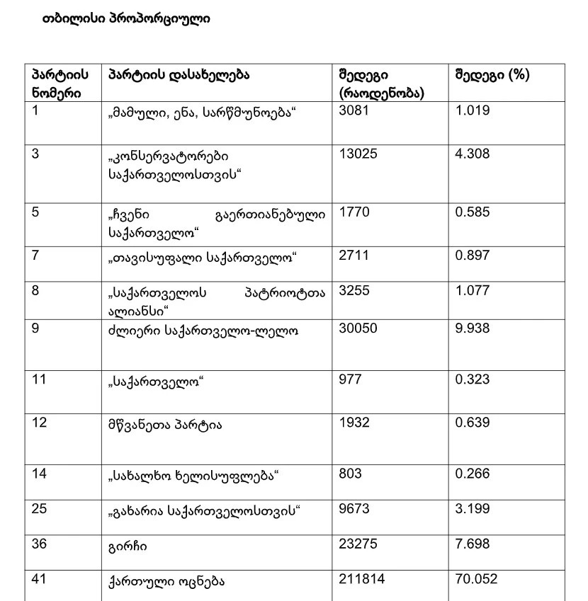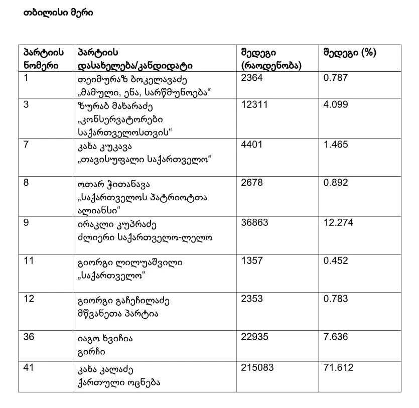 წარმოგიდგენთ დედაქალაქის პროპორციულ შედეგებს, ასევე თბილისისა და დანარჩენი თვითმმართველი ქალაქების მერების არჩევნების წინასწარ შედეგებს.
