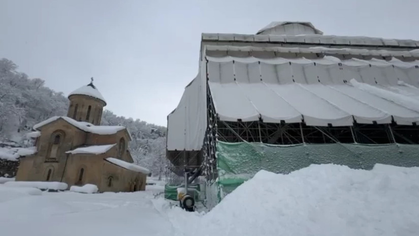 გელათის რეაბილიტაციის დროებითი კომიტეტი: გელათის კათედრალის ერთიანი/დროებითი გადახურვის თოვლის დიდი მასებისგან გასათავისუფლებლად მოწყობილი აგრეგატები გასული ღამის განმავლობაში ეფექტურად ასრულებდნენ თავის ფუნქციას