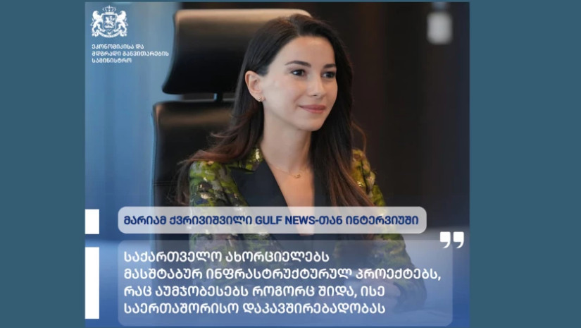 ჩვენი სტრატეგიული პრიორიტეტები ასახავს საქართველოს მზადყოფნას, რომ ეკონომიკურ ზრდას ხელი შეუწყოს ინფრასტრუქტურის განვითარების, ციფრული ტრანსფორმაციის, ენერგეტიკის დივერსიფიკაციისა და რეგიონული კავშირების გაძლიერების მეშვეობით, - აცხადებს ეკონომიკისა და მდგრადი განვითარების მინისტრი, მარიამ ქვრივიშვილი არაბთა გაერთიანებული საამიროების გამოცემა Gulf News - სთან ინტერვიუში.