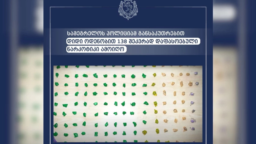 სამეგრელოს პოლიციამ განსაკუთრებით დიდი ოდენობით 138 შეკვრად დაფასოებული ნარკოტიკი ამოიღო