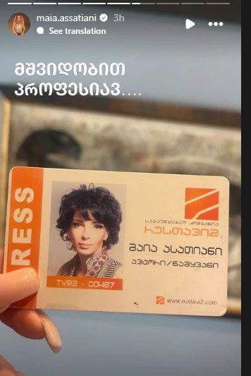 ჟურნალისტი მაია ასათიანი „ინსტაგრამზე“ „რუსთავი 2“-ის ჟურნალისტის მოწმობას აქვეყნებს და პროფესიას ემშვიდობება.