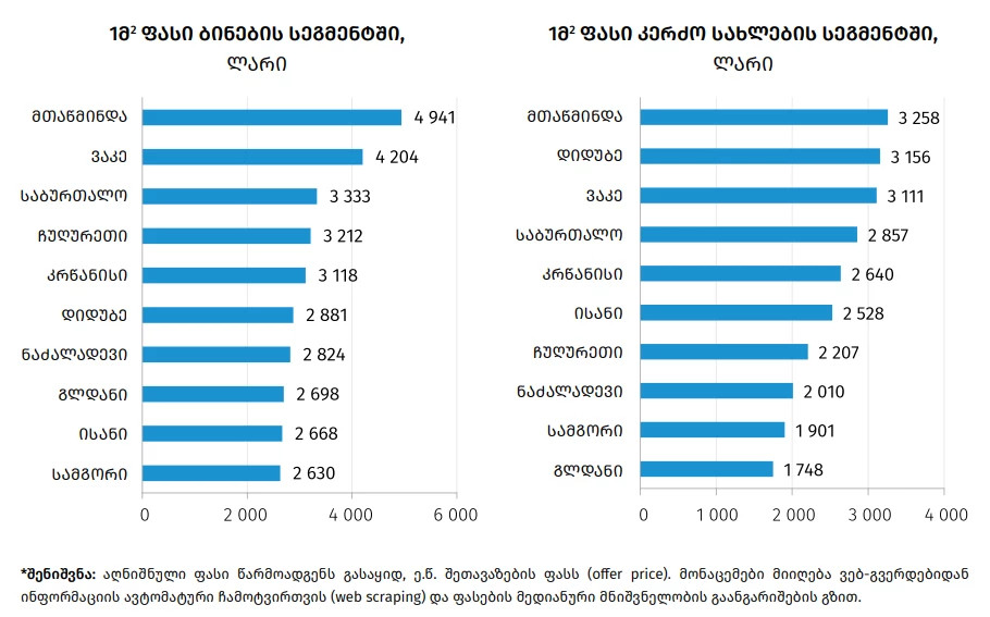 მათი ინფორმაციით, განსაკუთრებული ზრდა შეინიშნება კერძო სახლების სეგმენტში, რომელთა ფასიც 18,0%-ით გაიზარდა. ხოლო, საცხოვრებელი ბინები 12,5%-ით გაძვირდა.
